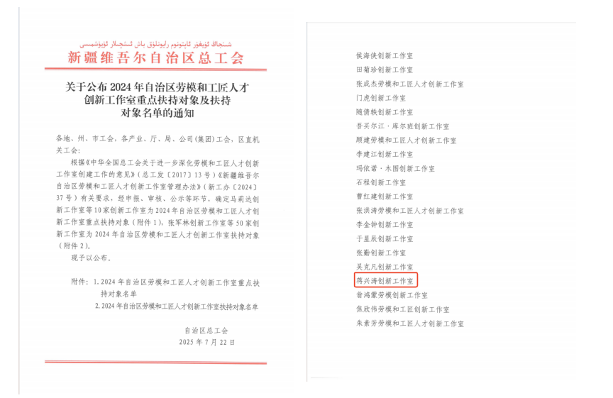 喜訊!“蔣興濤創(chuàng)新工作室”成功入選2024年自治區(qū)勞模和工匠人才創(chuàng)新工作室扶持名單?